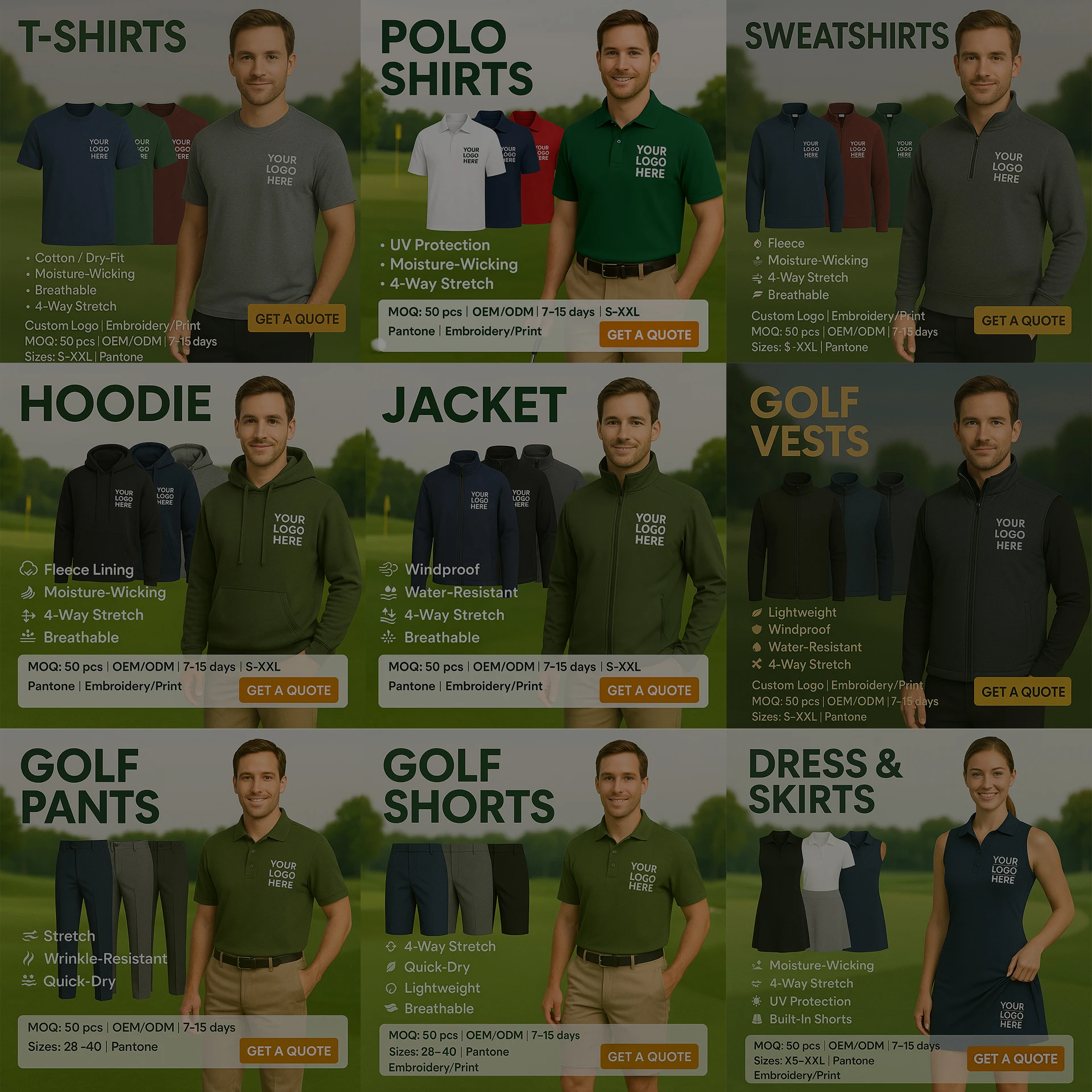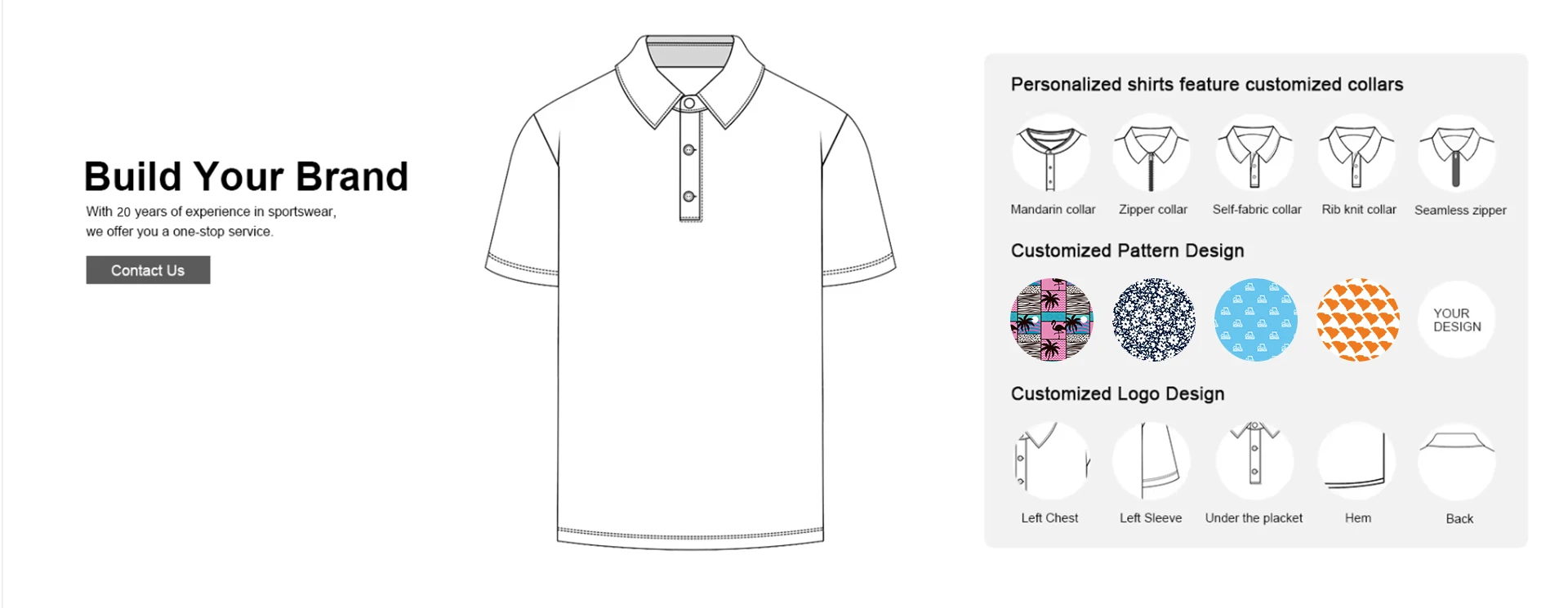 Main categories: T Shirt, Polo Shirt, Hoodies, Jacket, Pants